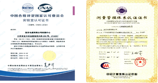 中心通過國家CNAS實驗室認可、中啟計量體系認證、ISO10012測量管理體系認證、ISO / IEC17025中國合格資格評定等。